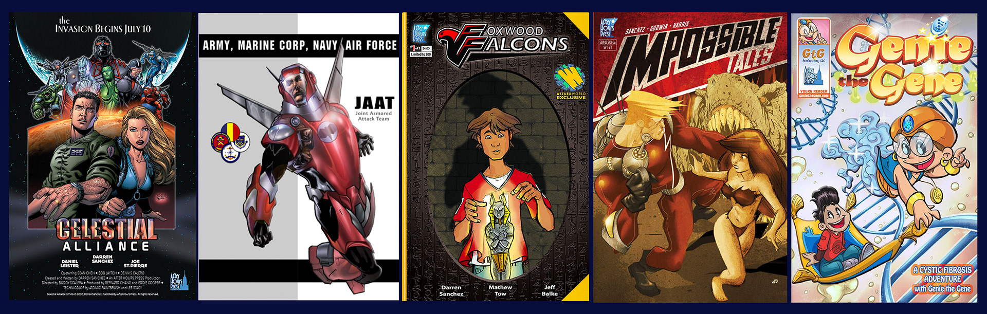 As a longtime comic book editor, writer, and creator Darren Sanchez has created and edited many genres, including Super Hero, Sci-Fi, Action/Adventure, Young Reader, Educational, Public Service, Medical Awareness, Branded Marketing stories, Sitcom Comics, Horror, Humor, Parody, Spy/Espionage, Classics Illustrated and Romance, as well as book and screenplay adaptations.